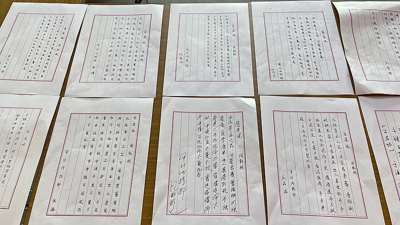 此次特色活動(dòng)得到大家的積極響應(yīng),活動(dòng)現(xiàn)場(chǎng)大家一字排開(kāi),摘抄有關(guān)廉潔自律的詩(shī)詞,所寫字體或大氣,或清秀,盡其所能地展現(xiàn)自身硬筆書法才能。活動(dòng)結(jié)束后,大家紛紛表示,這次清廉主題書法競(jìng)賽活動(dòng)為大家上了一堂生動(dòng)的廉潔文化課,書寫廉潔詩(shī)詞不僅能讓人感受到中國(guó)漢字文化的藝術(shù)魅力,又能對(duì)人的思想和行為進(jìn)行警醒和鞭策,時(shí)刻提醒自己要守住底線。