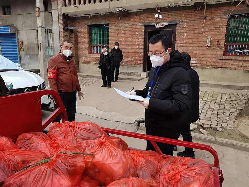 配合小王店村村委會向村民發放生活物資