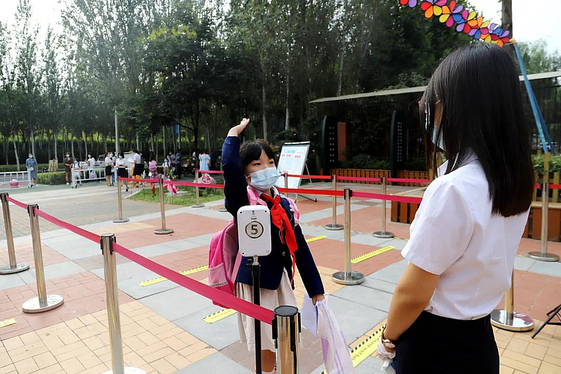為了迎接同學(xué)們“回家”,西咸灃西第一小學(xué)、西咸新區(qū)灃西新城實(shí)驗(yàn)學(xué)校,早早就做好了準(zhǔn)備,防疫演練、校園消殺、常態(tài)防疫不放松,學(xué)生們按照引導(dǎo)佩戴口罩,一米間距,體溫檢測,整齊有序進(jìn)入校園。