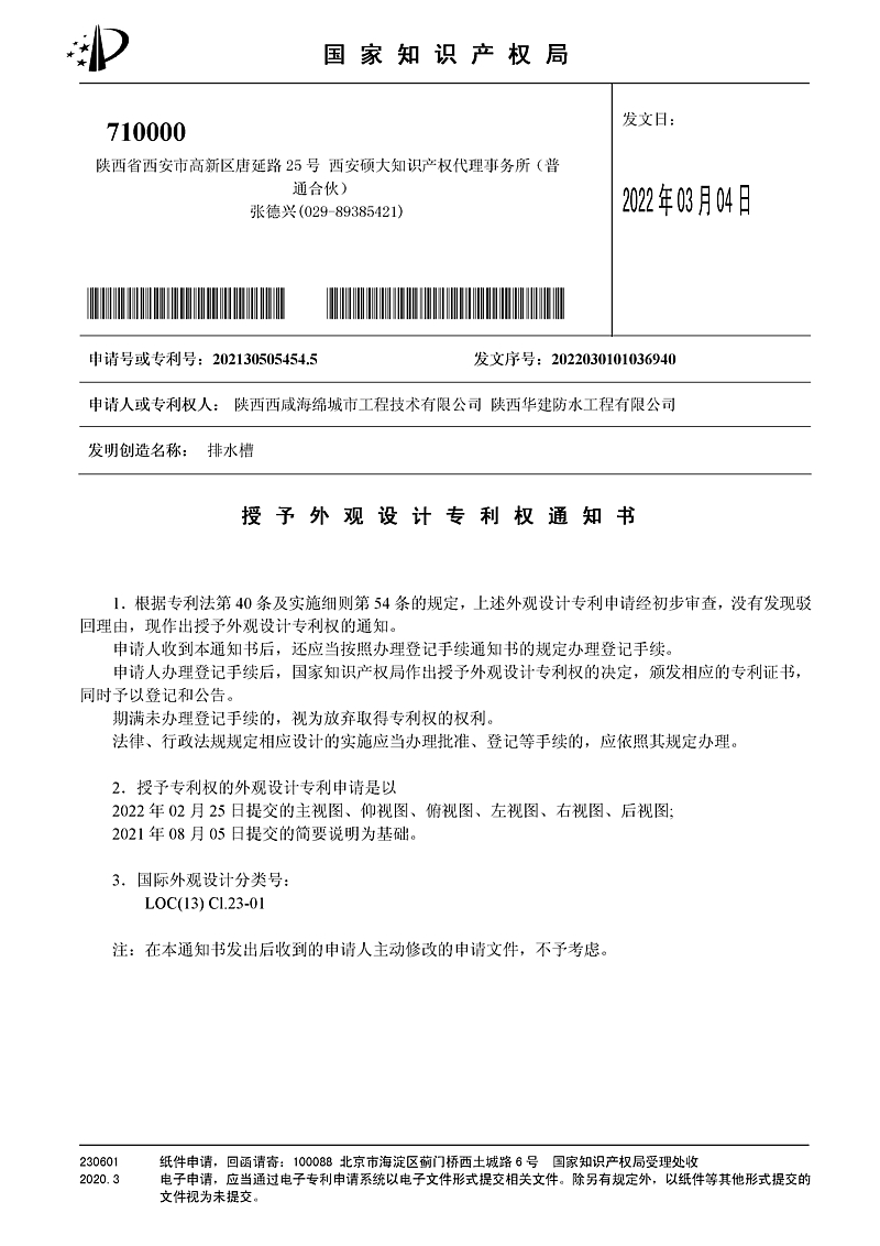 積極探索海綿城市領域新技術、新工藝、新產品,加快產業化推廣步伐,以技術創新推動產業發展。近日,灃西集團海綿城市技術公司一舉斬獲“排水槽外觀專利”和“一種車庫頂板排水及海綿城市雨水凈化利用系統”兩項專利授權,并在轄區項目實現示范應用。