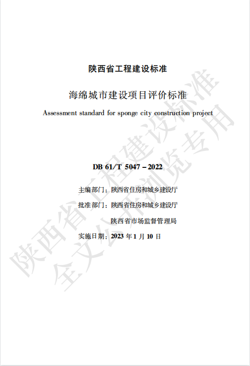 《海綿城市建設項目評價標準》(DB61/T 5047-2022)旨在科學引導和規范管理陜西省海綿城市建設項目評價工作,以評促建,系統化全域推進海綿城市建設。標準編制遵循因地制宜原則,充分結合陜西省海綿城市建設政策要求、行業發展等本土情況,根據項目功能要求及場地特點,提出建筑與小區、城市道路、綠地與廣場、城市水系等項目專項設計、施工建設、運行維護的評價指標體系,科學引導各地區、各行業加快海綿城市建設。