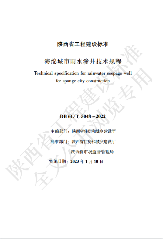 近日,由灃西集團海綿城市技術公司聯合陜西省城鄉規劃設計研究院主編的《海綿城市雨水滲井技術規程》(DB61/T 5048-2022)《海綿城市建設項目評價標準》(DB61/T 5047-2022)2項省級地方標準批準發布,目前已正式實施。
