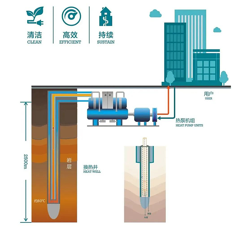 2018年,江億、張國偉等5位院士及9位專家教授在技術(shù)論證會上一致認為,中深層地?zé)岬芈窆芄峒夹g(shù)具有取熱持續(xù)穩(wěn)定、地溫恢復(fù)快、環(huán)境影響低的特點,適宜作為清潔供熱熱源。經(jīng)現(xiàn)場實測,該技術(shù)比傳統(tǒng)供暖技術(shù)節(jié)能30%以上,有很好的經(jīng)濟、社會、環(huán)境效益。