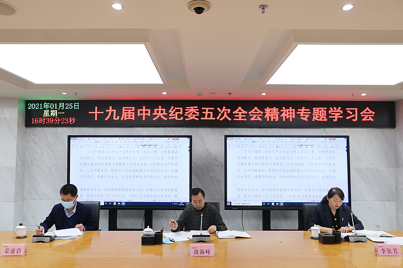 1月25日下午,灃西集團召開十九屆中央紀委五次全會精神專題學習會暨2021年第一期紀檢監察業務培訓會,集團黨委委員、紀委書記尚海峰出席會議并講話,集團全體紀檢監察干部、各單位紀檢監察監督員參加。