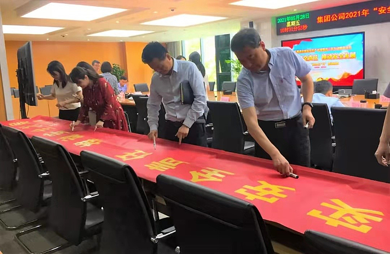 會議傳達學習了習近平總書記關于安全生產的重要論述,安排部署了集團2021年“安全生產月”和“安全生產萬里行”活動各項工作,各部門、各子公司負責人在安全宣傳橫幅上簽名。