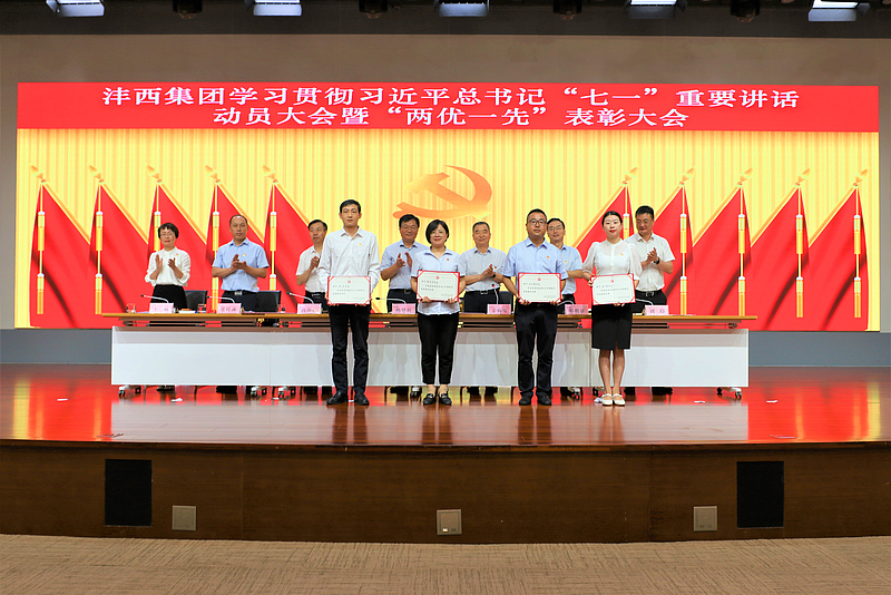 7月14日,灃西集團召開學習貫徹習近平總書記“七一”重要講話表彰“兩優一先”大會暨2021年上半年經營運行分析會。集團黨委書記、董事長楊建柱出席并講話,總經理姜勤發主持會議,其他在家班子成員出席。