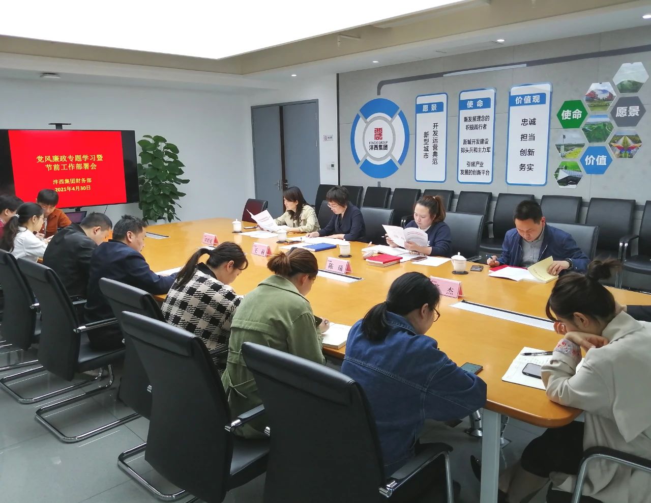 4月30日上午,灃西集團財務部召開黨風廉政專題學習暨節前工作部署會,集團總經理助理、財務部部長王莉出席會議并講話。會議集中學習了新城紀委、黨委組織部《關于重申黨員領導干部家庭婚喪嫁娶行為有關紀律的通知》《為什么要馳而不息反對形式主義、官僚主義》《關于做好“五一”期間貫徹落實中央八項規定精神及糾治“四風”監督檢查工作的通知》《繼續從延安精神...